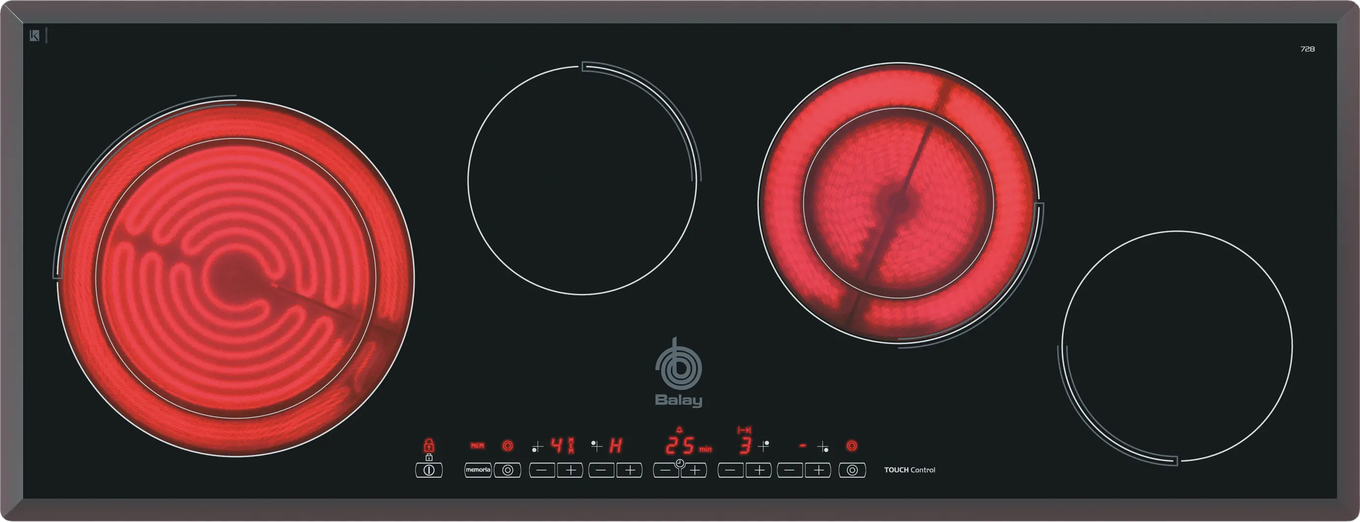 Sensores (+/-) para cada zona de cocción