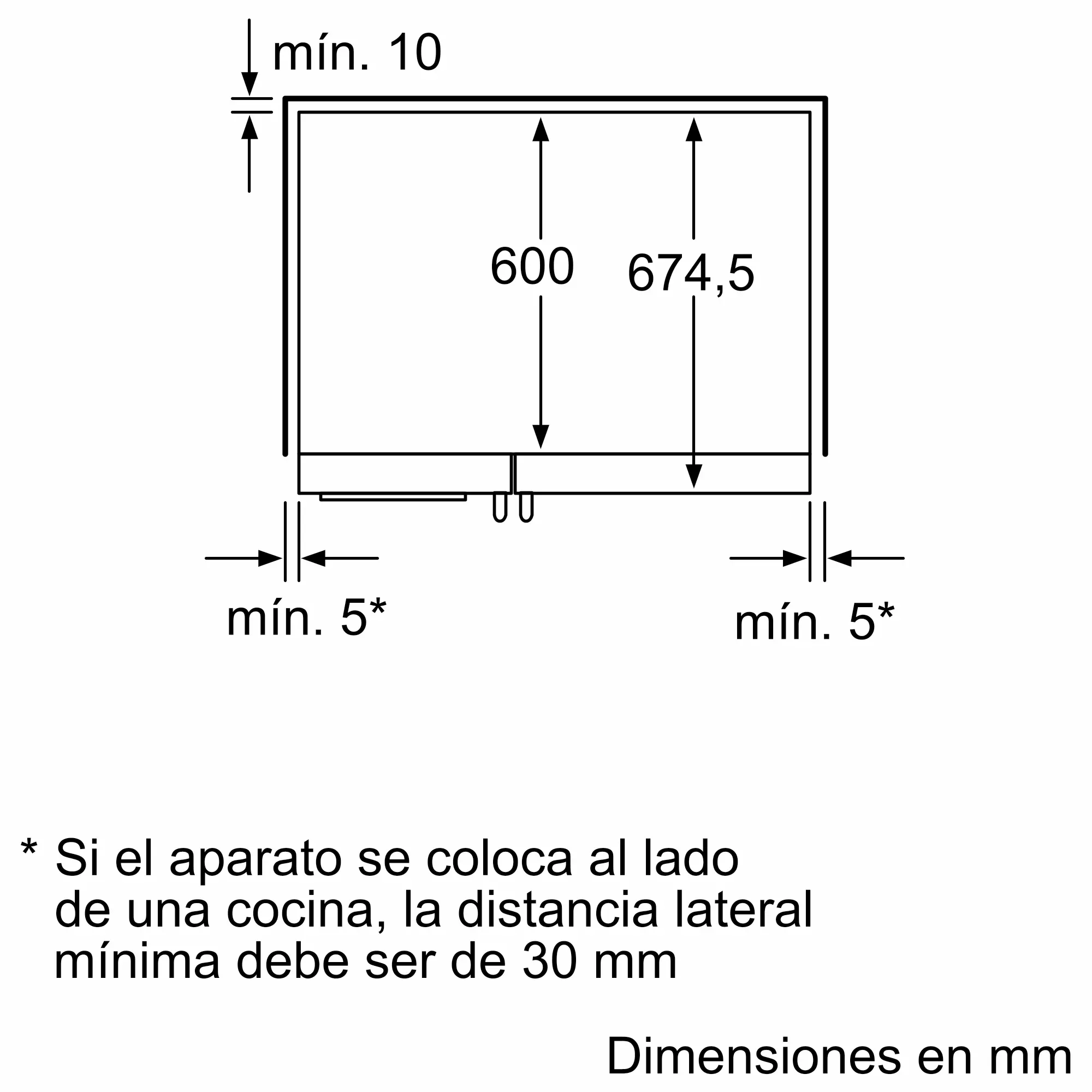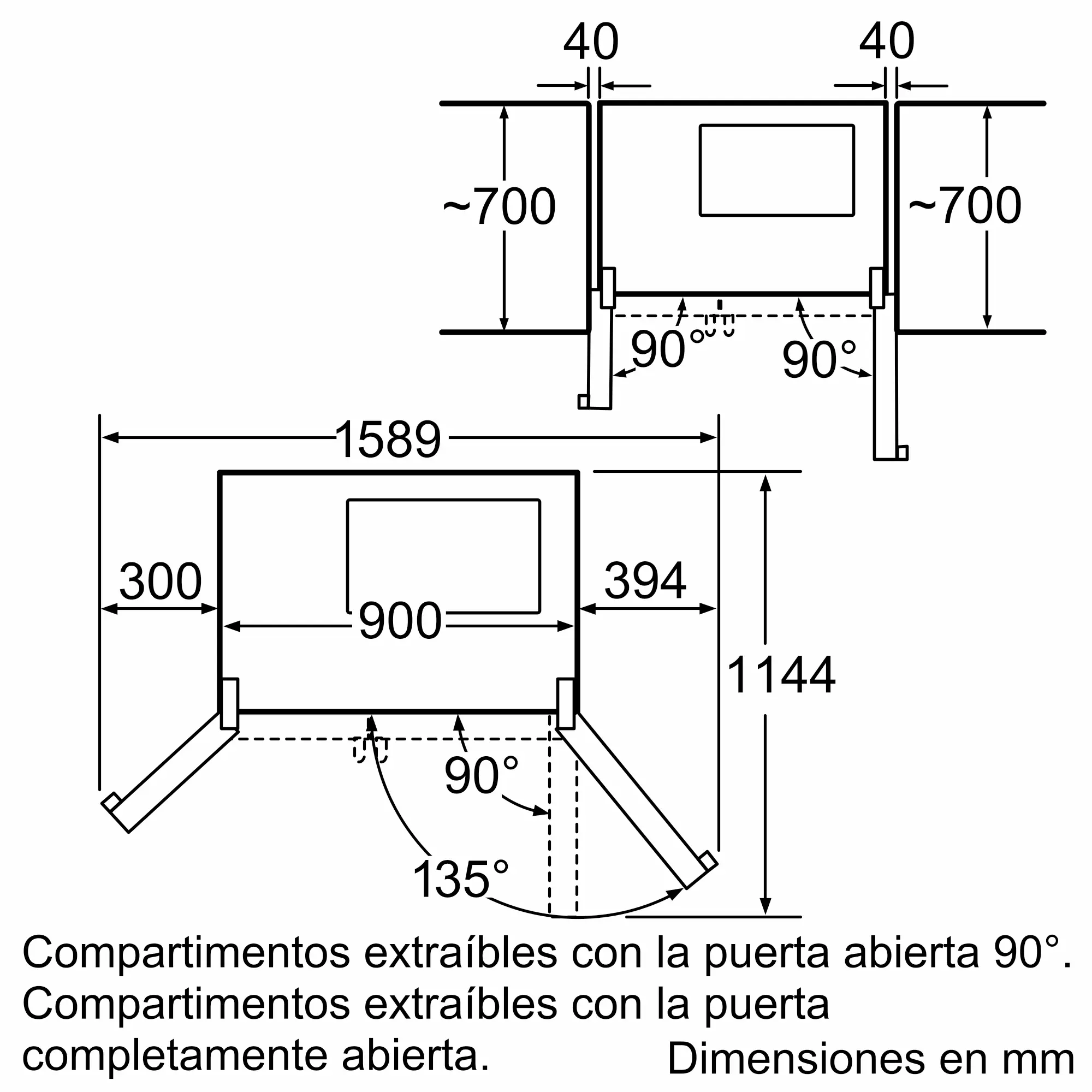 Dimensiones de instalación necesarias (H x W x D)