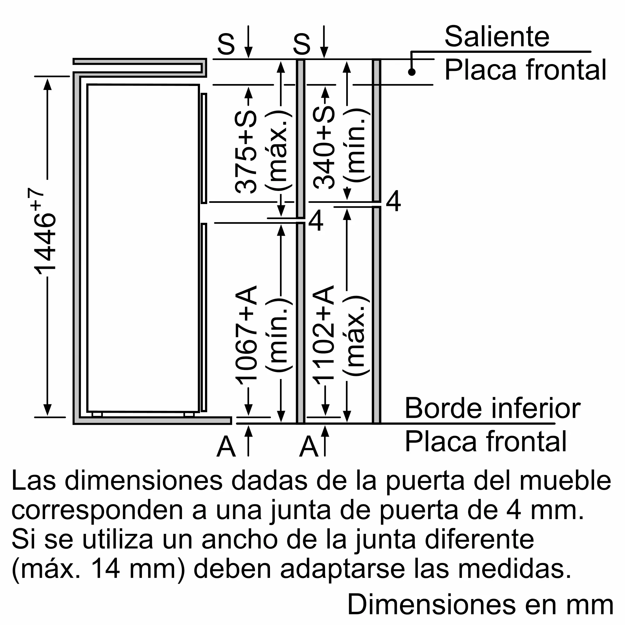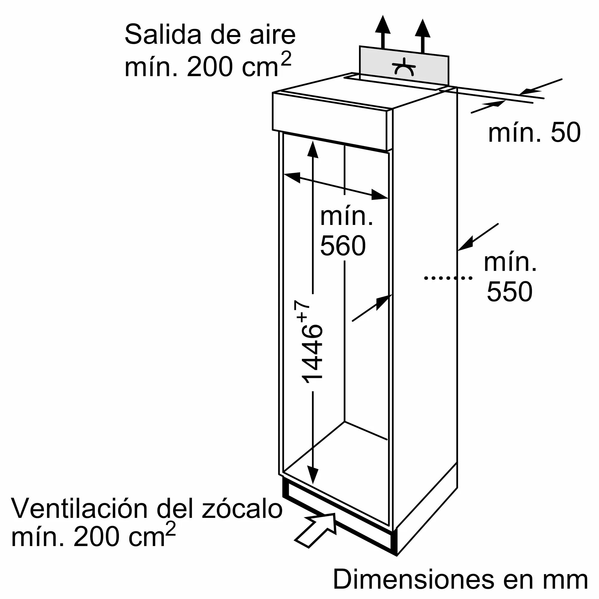 Dimensiones de instalación necesarias (H x W x D)