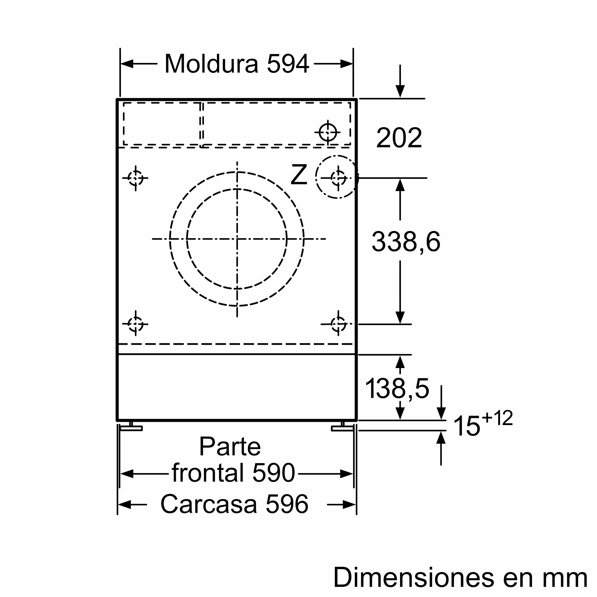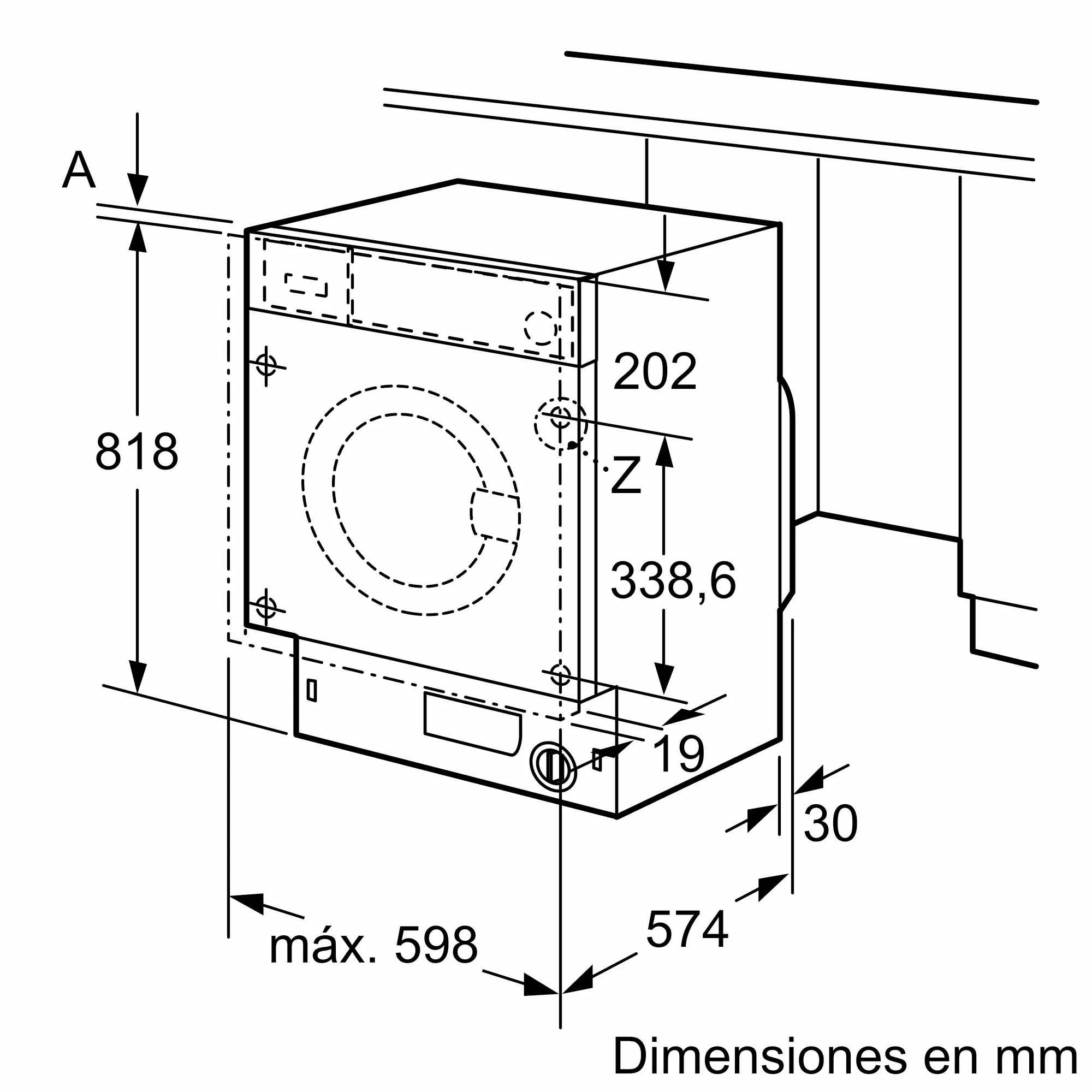 Dimensiones del aparato: alto x ancho x fondo (sin puerta)