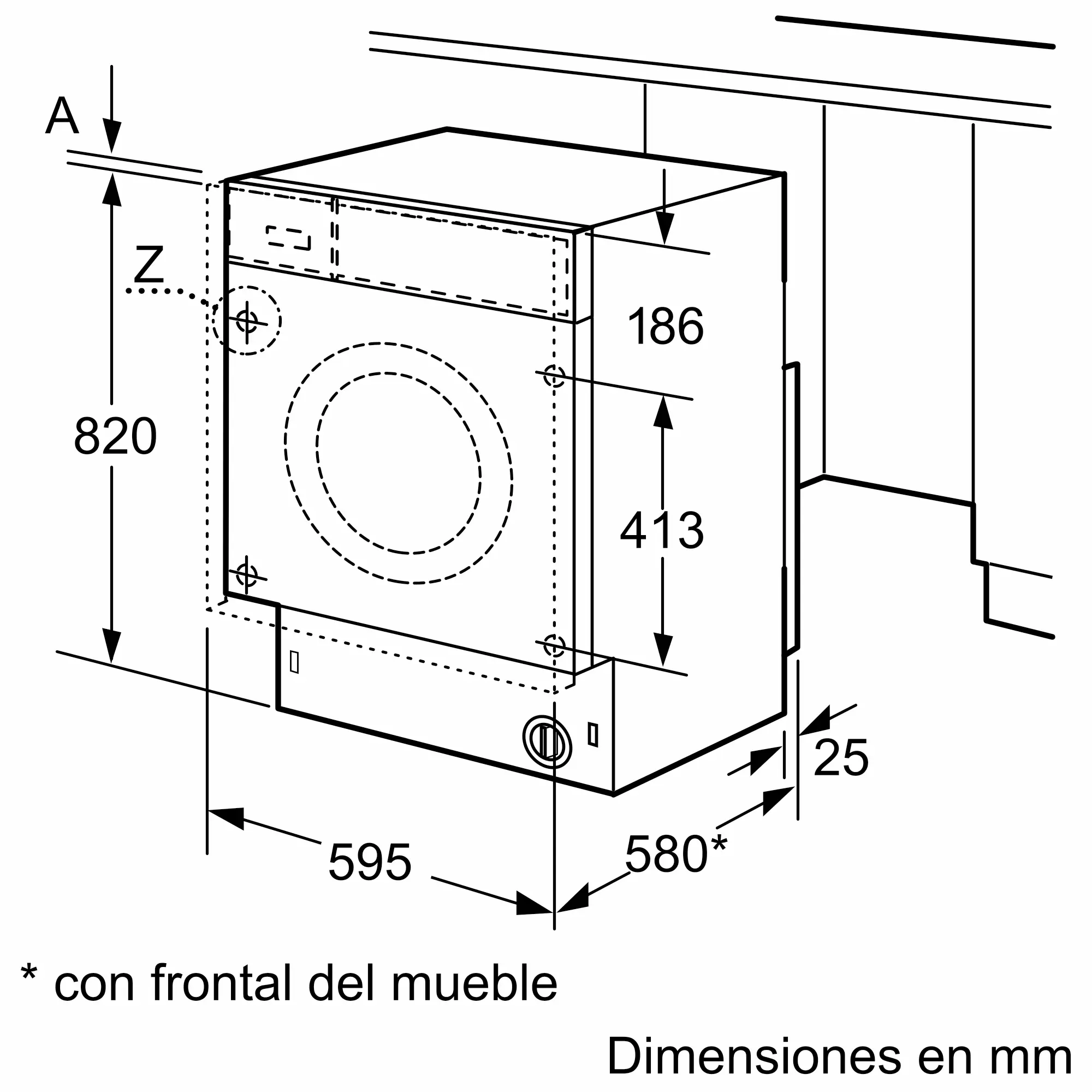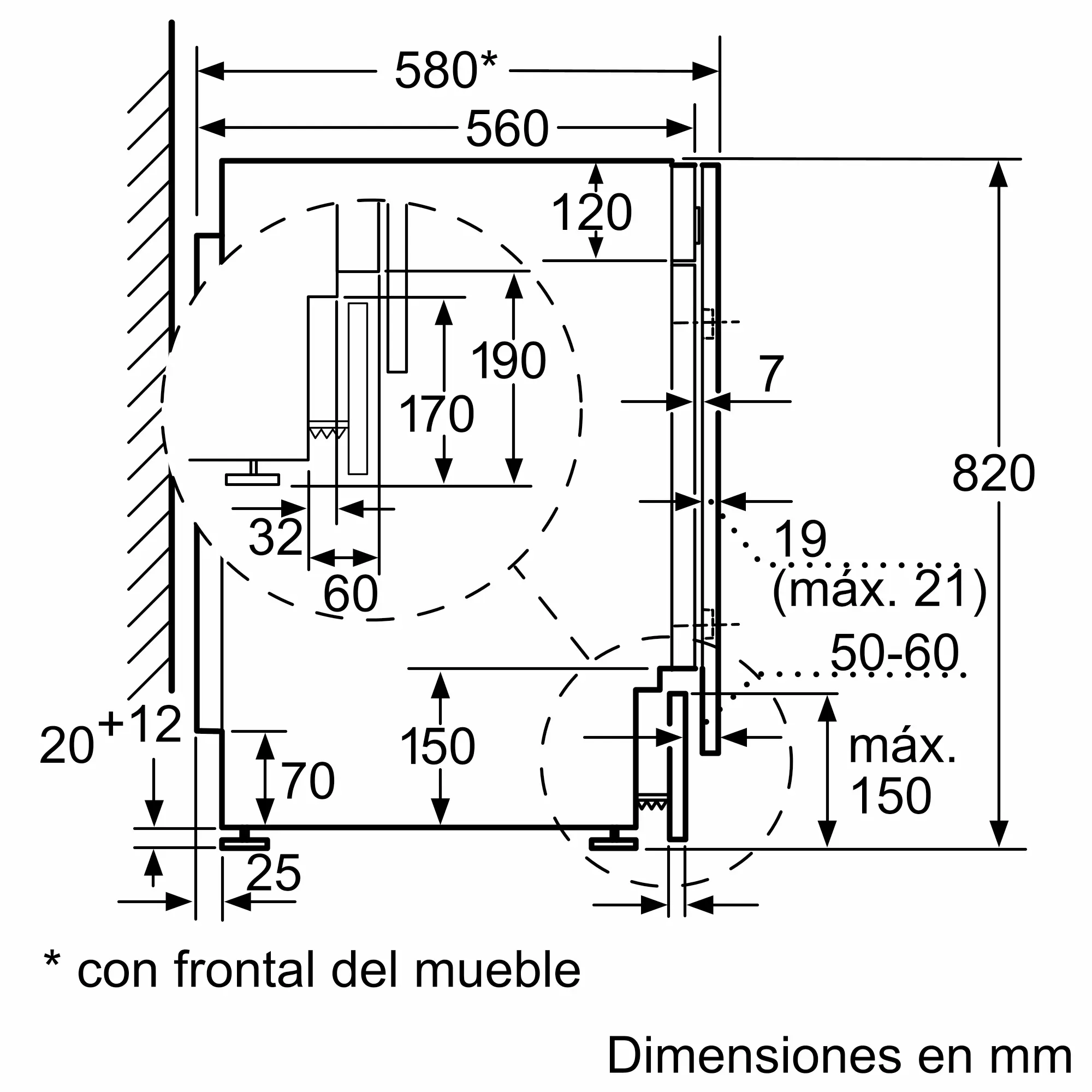 Dimensiones del aparato: alto x ancho x fondo (sin puerta)
