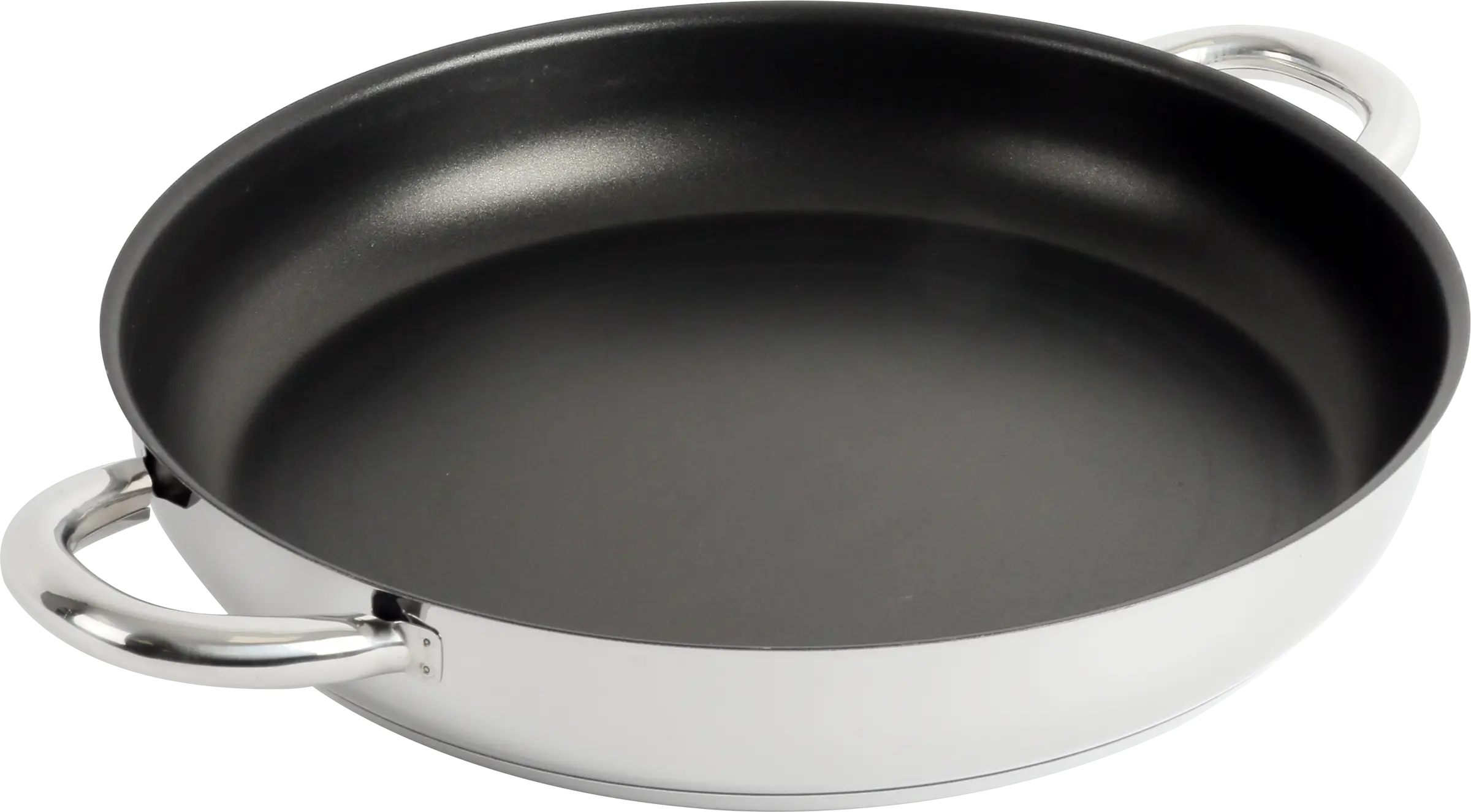 Paellera con recubrimiento antiadherente fabricada en acero inoxidable 18/10 de acabado pulido.
