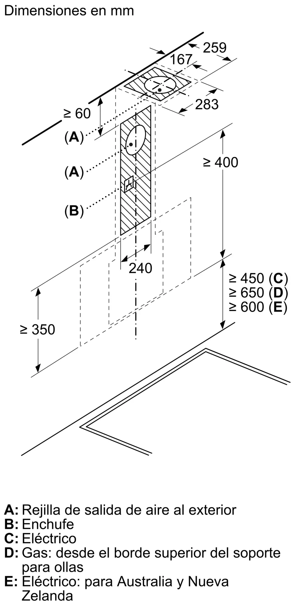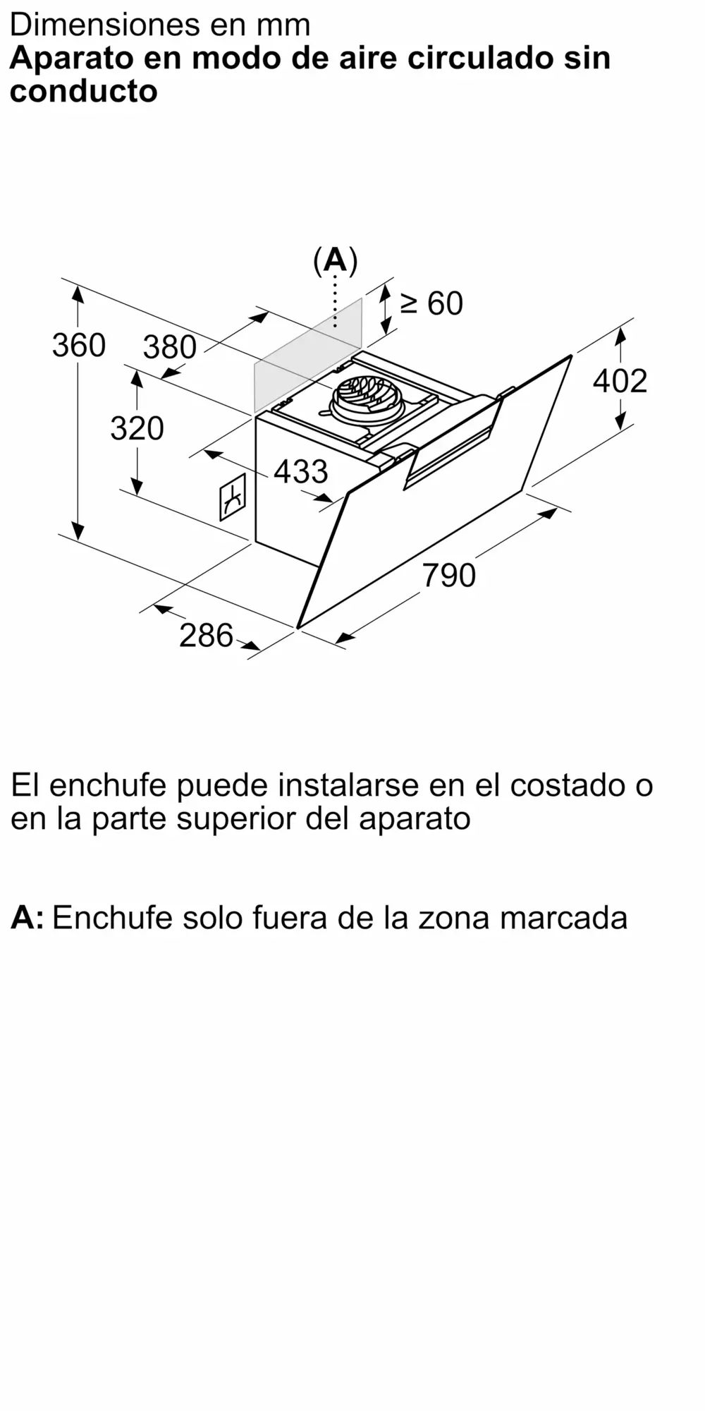 Salida al exterior/recirculación (con set accesorio opcional que se vende por separado)
