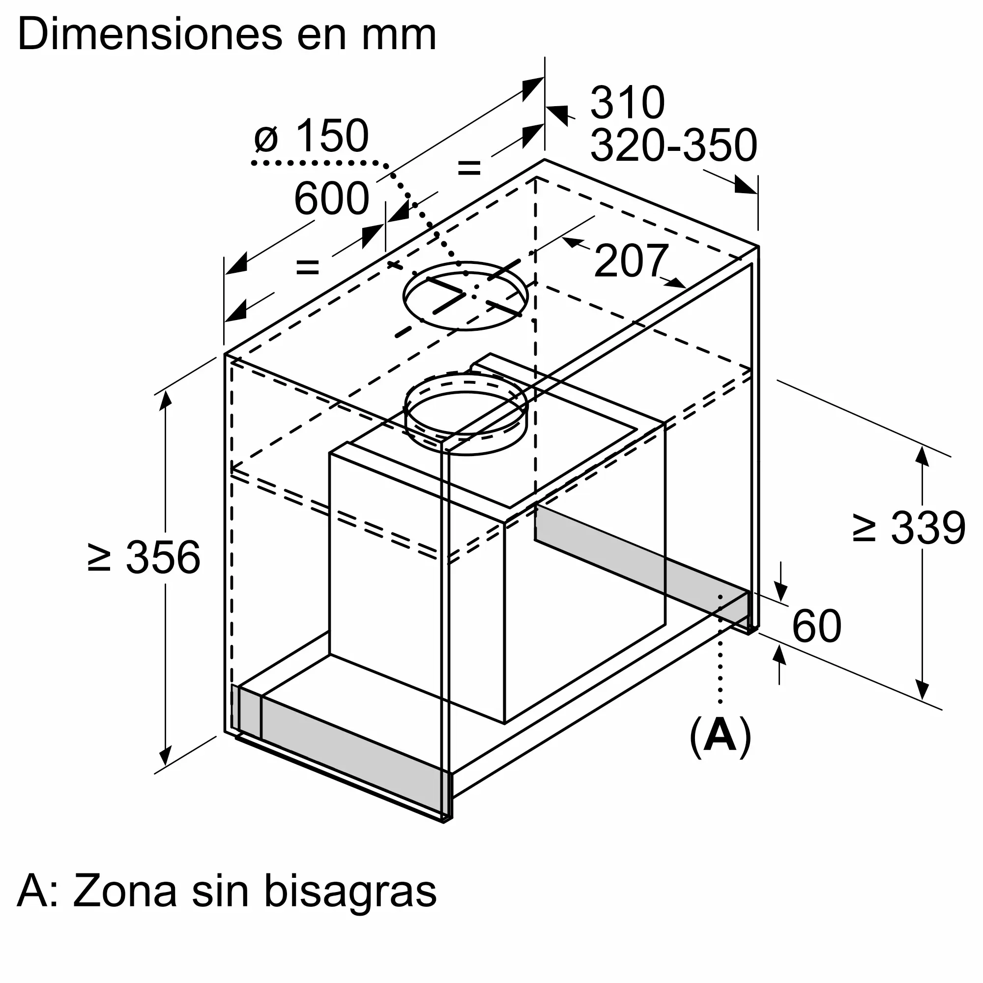 Salida al exterior/recirculación (con set accesorio opcional que se vende por separado)