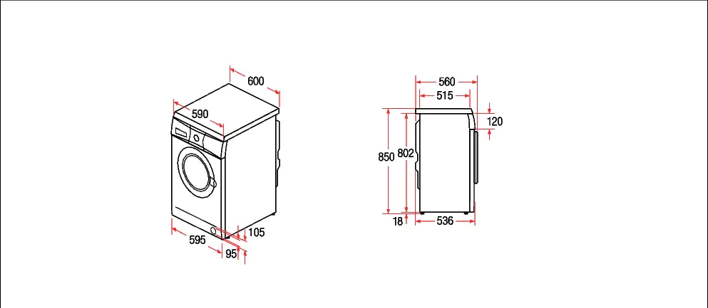 Dimensiones del aparato: alto x ancho x fondo (sin puerta)
