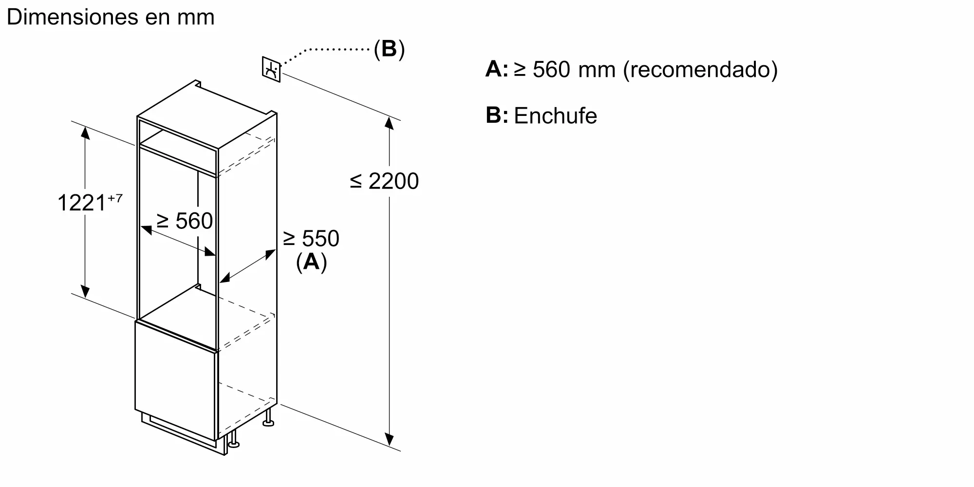 Dimensiones de instalación necesarias (H x W x D)