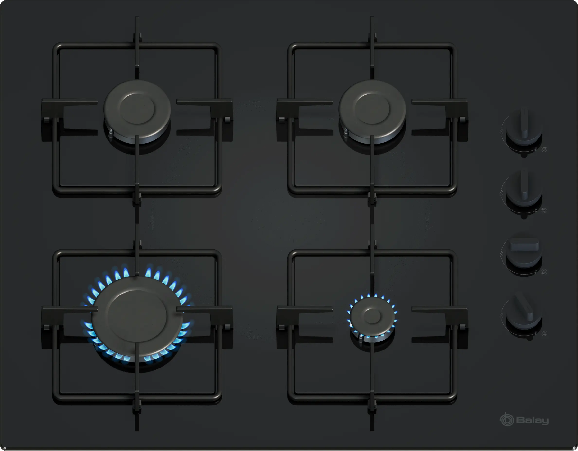 Placa de gas 60 cm Cristal templado, Negro3ETG464SB