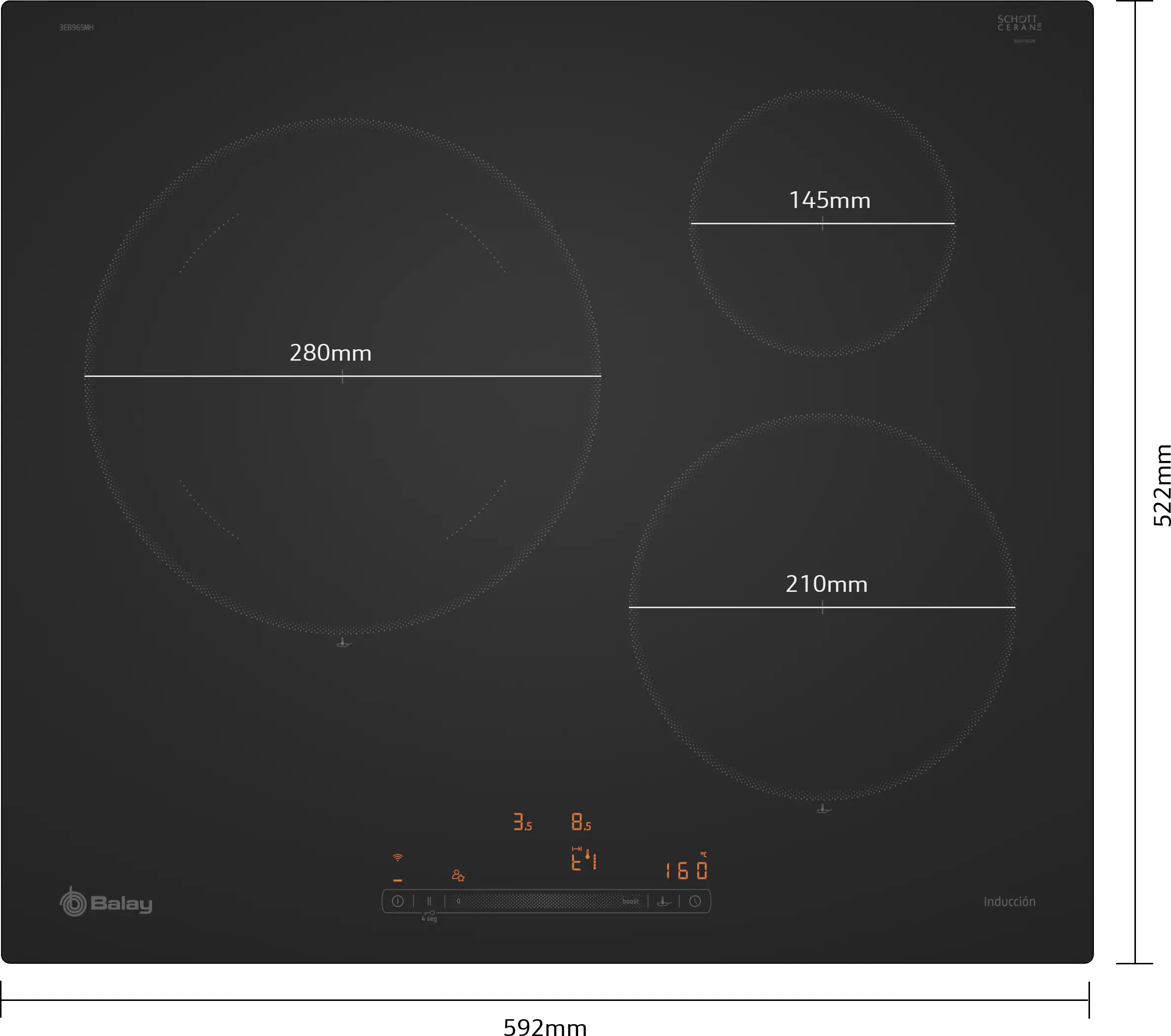 Placa de inducción 60 cm Acabado negro mate, sin perfiles3EB965MH