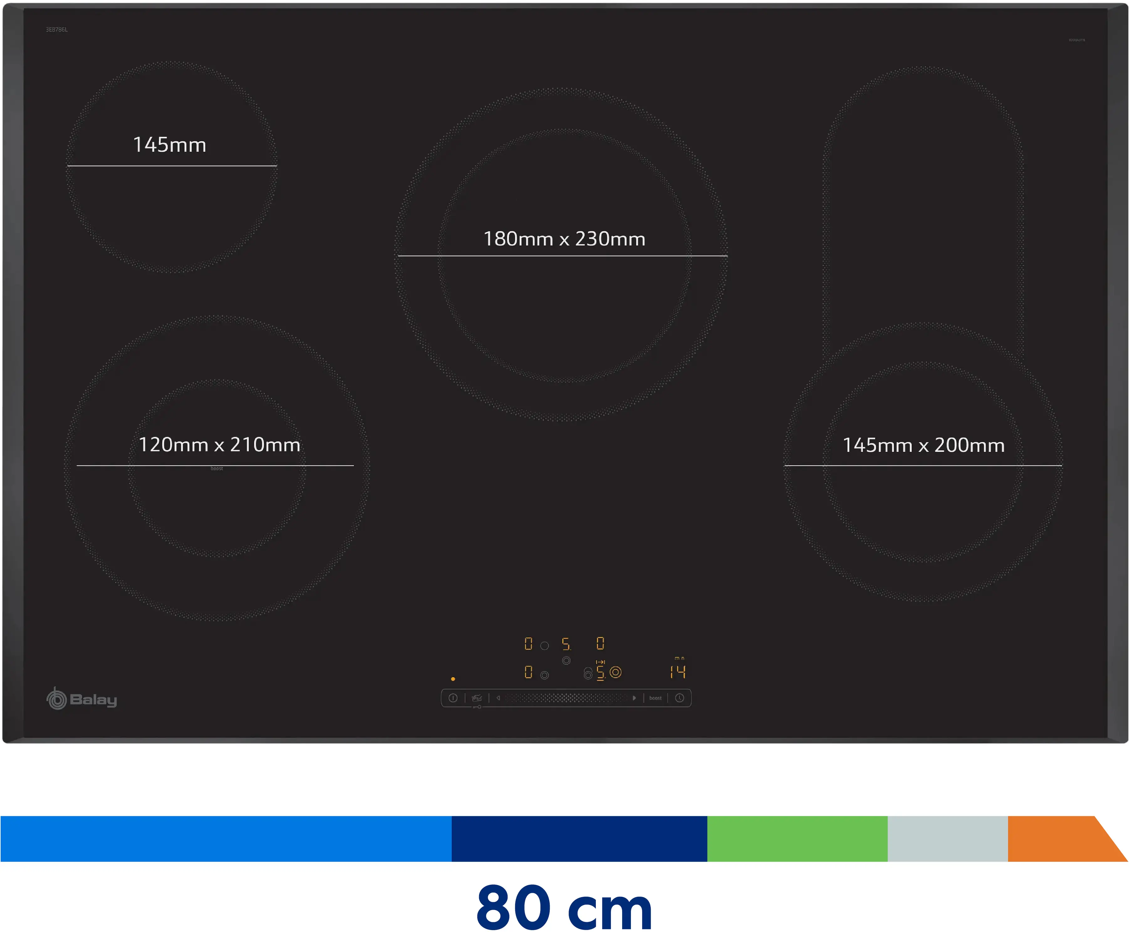 Placa vitrocerámica 80 cm sin perfiles3EB786LQ